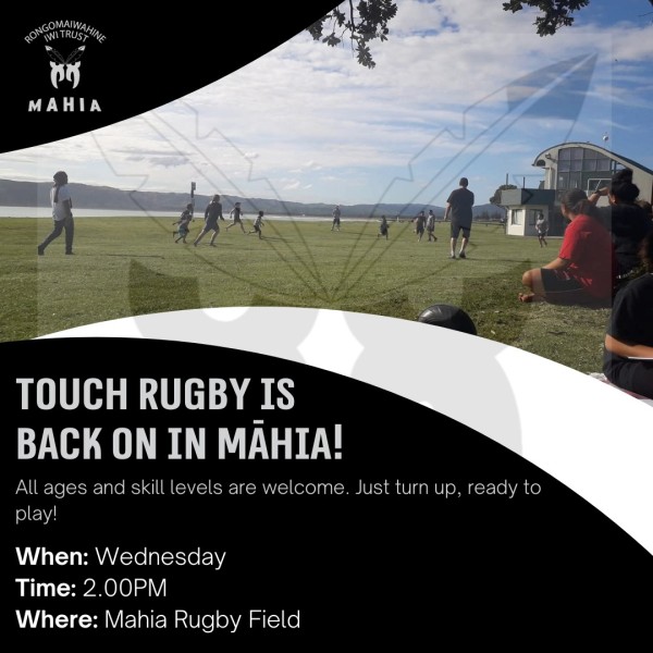 We’re excited to kick off touch again in 2026 and would love to see whānau back on the field! All ages and skill levels are welcome. Just turn up, ready to play! For more info: koreromai@rongomaiwahine.iwi.nz.